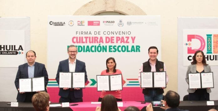 El DIF Coahuila firmó un convenio con el Poder Judicial, la Fiscalía General de Justicia y la Secretaría de Educación en el estado para fortalecer en la comunidad educativa una cultura de paz y mediación.
