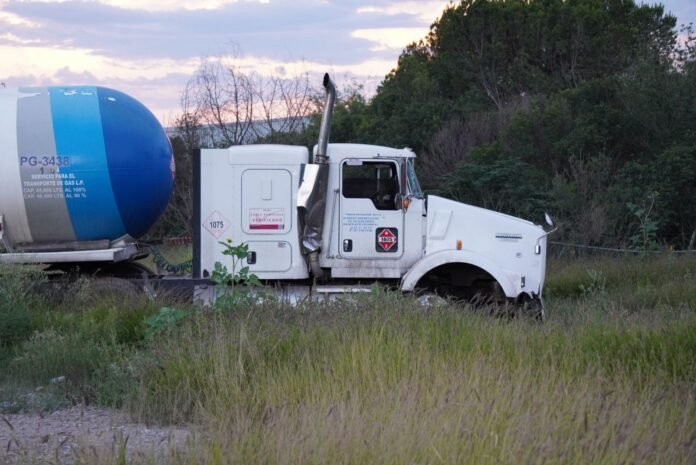 Una pipa de gas terminó fuera del camino en la carretera Saltillo–Torreón, a la altura del kilómetro 8, frente al relleno sanitario, luego de que el conductor presuntamente intentara huir tras ocasionar un choque momentos antes en el bulevar Vito Alessio Robles.