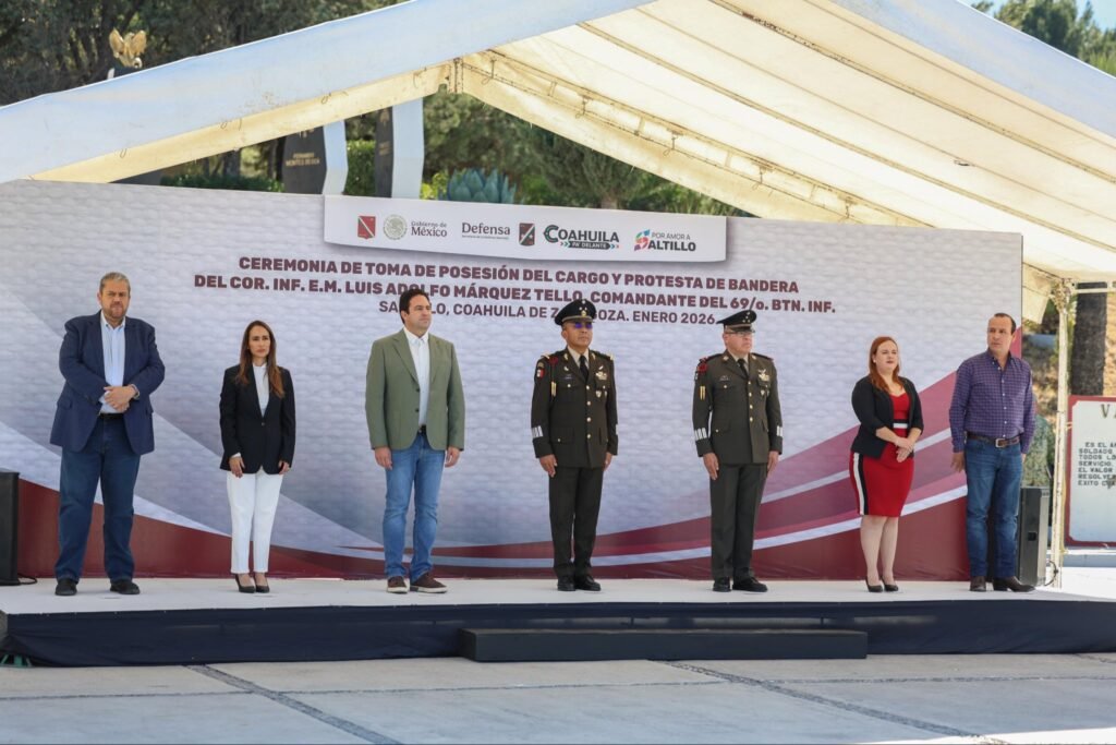***El Coronel de Infantería del Estado Mayor Luis Adolfo Márquez Tello, realizó su toma de posesión y protesta de bandera como comandante del 69 Batallón de Infantería Reiteramos nuestro compromiso de seguir trabajando bien coordinados, junto a los tres órdenes de gobierno para mantener a Saltillo como la capital más segura de México, asi lo exprerso el alcalde Javier Díaz González…