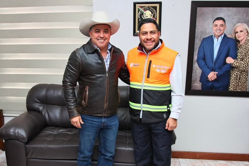 ***El alcalde de Sabinas “Chano” Díaz Iribarren, recibió a Tanech Sánchez, delegado de la SICT en Coahuila, con el anuncio del recarpeteo 25 kilómetros de la carretera 57, en el tramo Sabinas–Monclova…