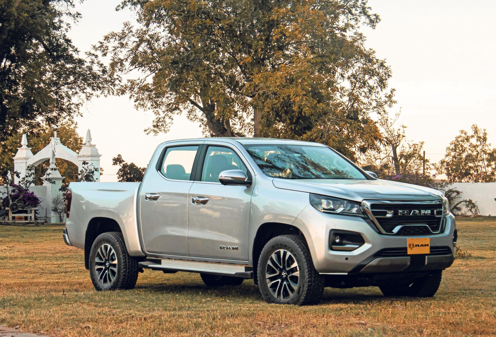 Visualmente, la Ram 1200 mantiene el ADN agresivo y robusto de la marca: parrilla negra con el emblema frontal en gran formato, faros LED en la versión Laramie, loderas y estribos que refuerzan la imagen ruda, y líneas laterales con inspiración directa en hermanas mayores como la Ram 1500.