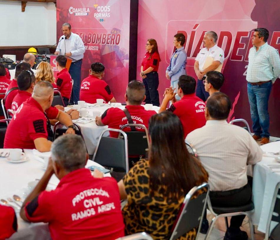 RAMOS ARIZPE, COAH.- En el marco del Día del Bombero, el Gobierno Municipal de Ramos Arizpe, encabezado por el alcalde Tomás Gutiérrez Merino, reconoció la entrega y compromiso de las mujeres y hombres que integran la Dirección de Protección Civil y Bomberos, a quienes se les entregaron uniformes, estímulos, equipo de trabajo y una nueva unidad móvil destinada a la atención ciudadana.
