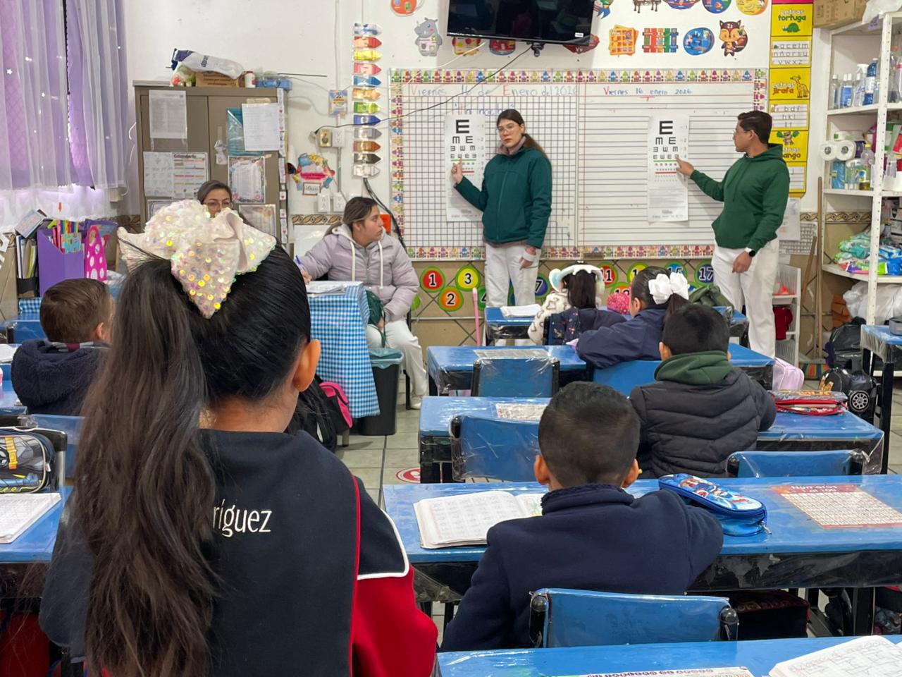 Detalló que el programa consiste en acudir a escuelas primarias para aplicar pruebas de agudeza visual, revisiones de talla y peso, evaluaciones de salud bucal, así como pláticas de orientación nutricional, con el objetivo de fomentar hábitos saludables y atender de manera oportuna posibles factores de riesgo en la salud infantil.