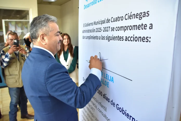 Durante la ceremonia, Leija Vega presentó su Plan de Trabajo para los primeros 100 días de su administración, el cual se centra en cinco ejes estratégicos para atender las necesidades de la población y promover el crecimiento sostenible de Cuatro Ciénegas.