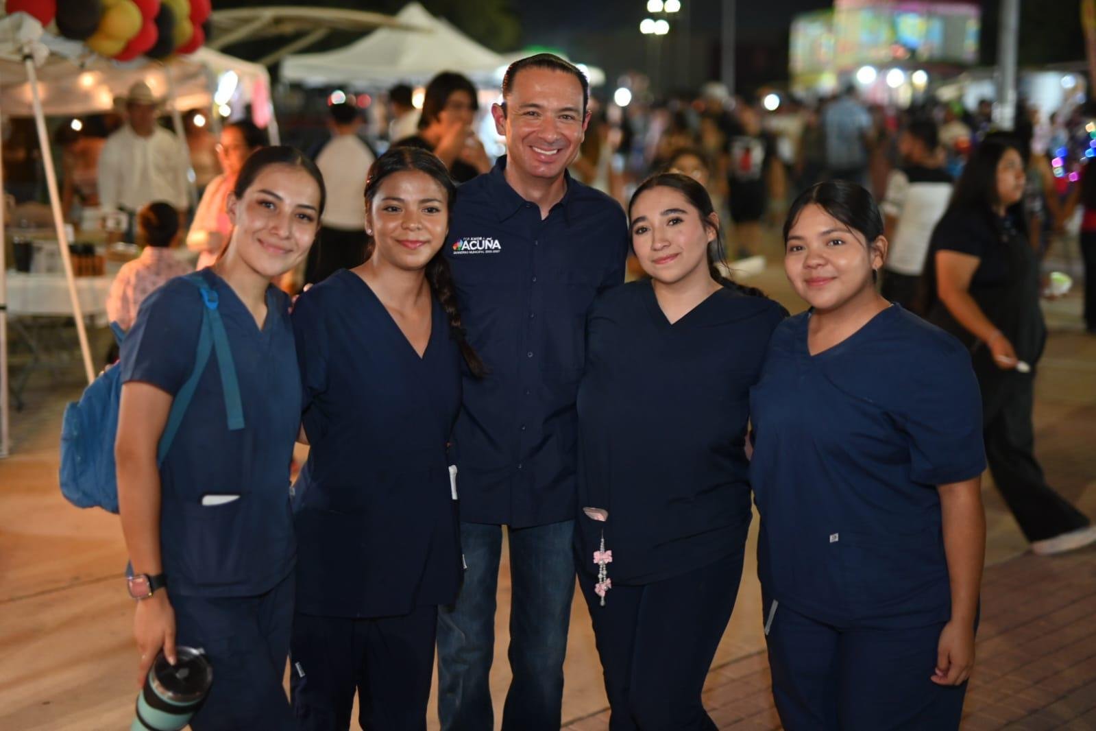 ACUÑA, COAH.- La Macroplaza de Acuña se llenó de vida con la realización de la Primera Gran Feria Nocturna del Comercio, organizada por Fomento Económico Municipal, a la que asistieron cientos de familias que disfrutaron de un ambiente festivo y familiar.