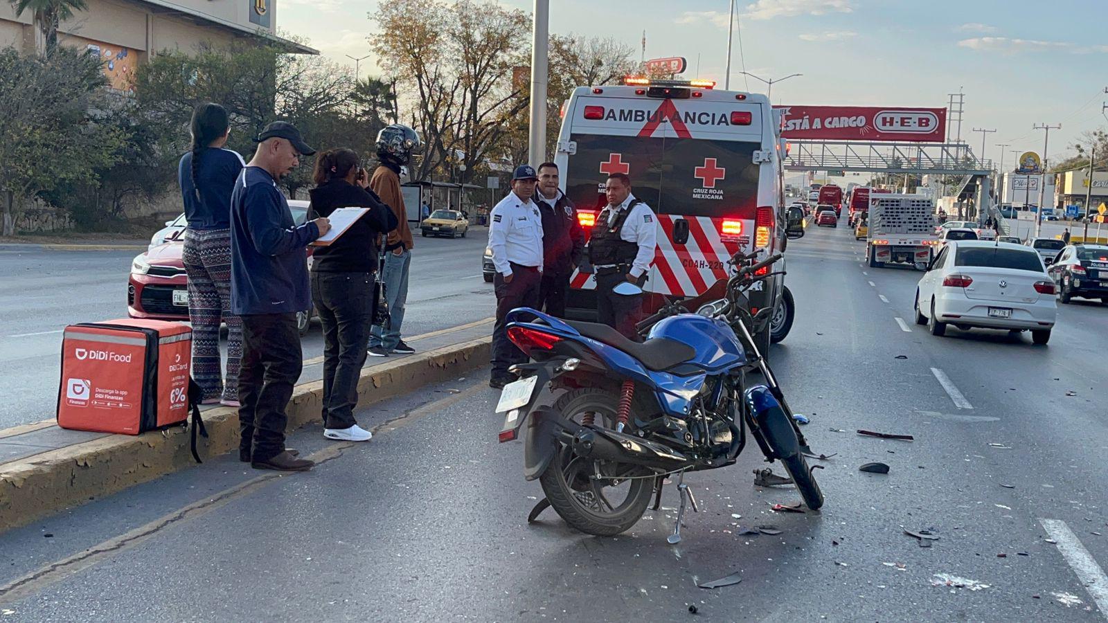 Un accidente vehicular en la colonia Huertas de Lourdes, en Saltillo, dejó gravemente herido a un repartidor de comida y su motocicleta completamente destruida.