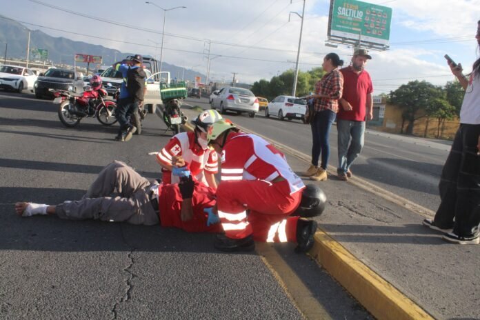 Un hombre identificado como René López, de 52 años, resultó malherido luego de sufrir un accidente en motocicleta durante la tarde de este miércoles, cuando se desplazaba por el periférico Luis Echeverría, a la altura del Gimnasio Municipal de Saltillo.