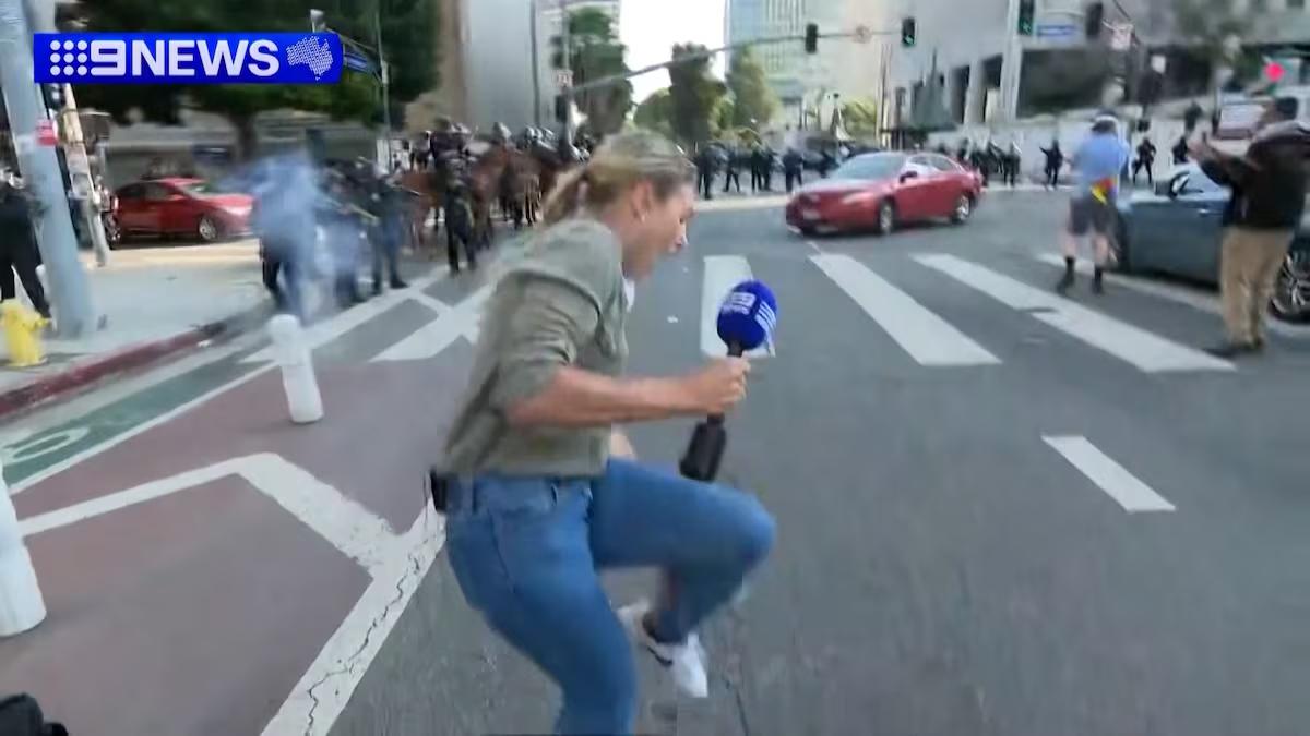 La periodista corresponsal de 9News, Lauren Tomasi, resultó lesionada tras recibir un disparo de bala de goma en la pierna, mientras cubría las protestas contra las leyes antimigrantes en el centro de Los Ángeles, California.