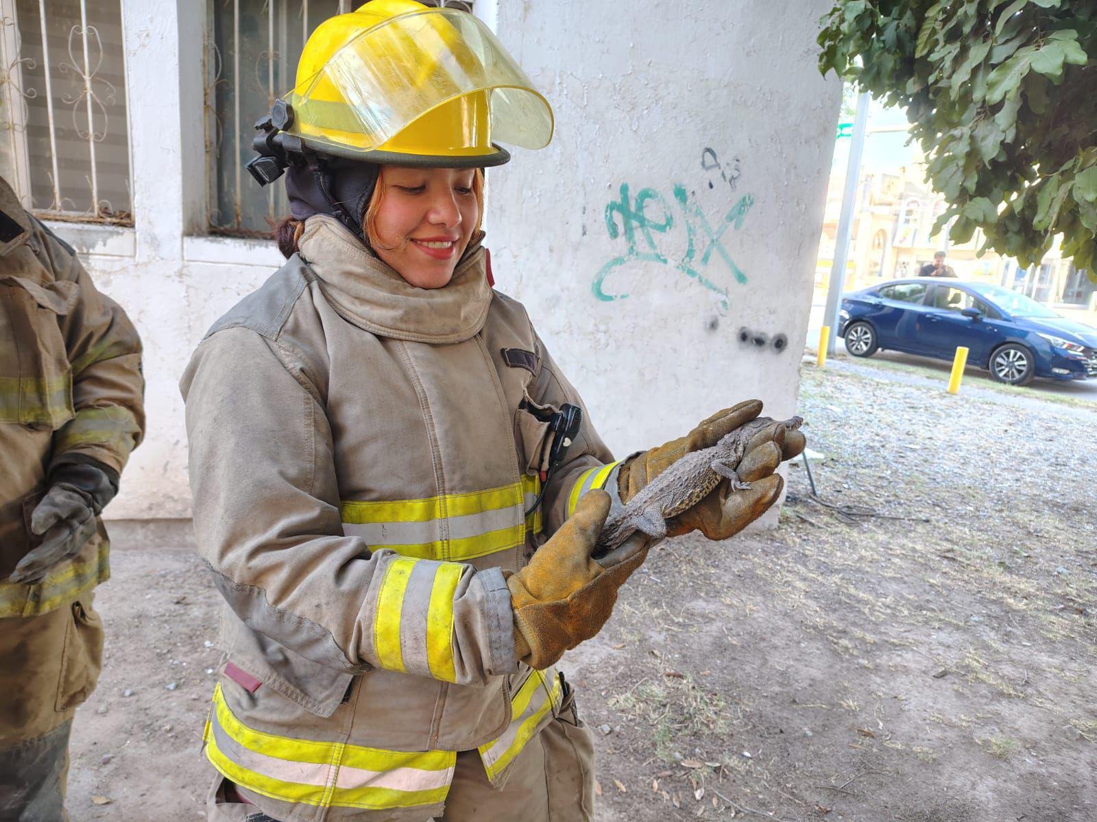 TORREÓN, COAH.- En una respuesta inmediata a los reportes ciudadanos, personal de Protección Civil y Bomberos de Torreón aseguró a un ejemplar de reptil que deambulaba en el cruce de las calzadas Saltillo 400 y Gómez Morín.