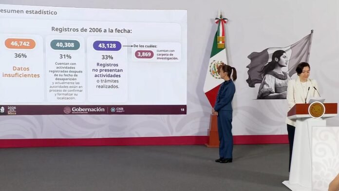 Durante la presentación del informe, se detalló que el registro histórico nacional acumula 394 mil 645 casos desde 1952, de los cuales 262 mil 111 personas han sido localizadas, lo que representa el 66% del total.