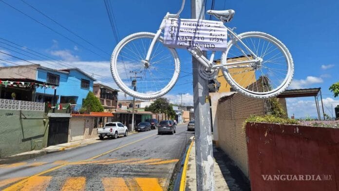 Una bicicleta blanca, instalada como memorial en honor a Manuel Chaparro Aquino, fue robada tras permanecer poco más de cuatro meses en la colonia Burócratas de Saltillo.