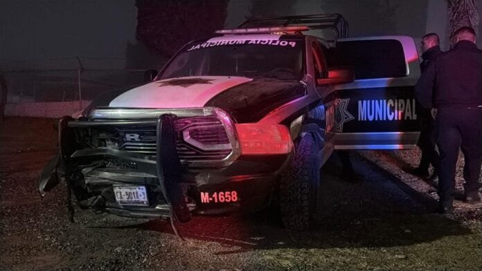 El incidente se originó cuando el automovilista transitaba a exceso de velocidad y no logró frenar al llegar al punto de revisión, impactando de lleno contra una patrulla. El percance dejó a los vehículos involucrados obstruyendo la vialidad, generando tráfico en la zona.