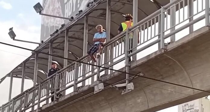 Al llegar, y luego de dialogar con el hombre, los rescatistas consiguieron convencerlo de bajar del pasamanos donde permanecía recargado y a punto de arrojarse al periférico.