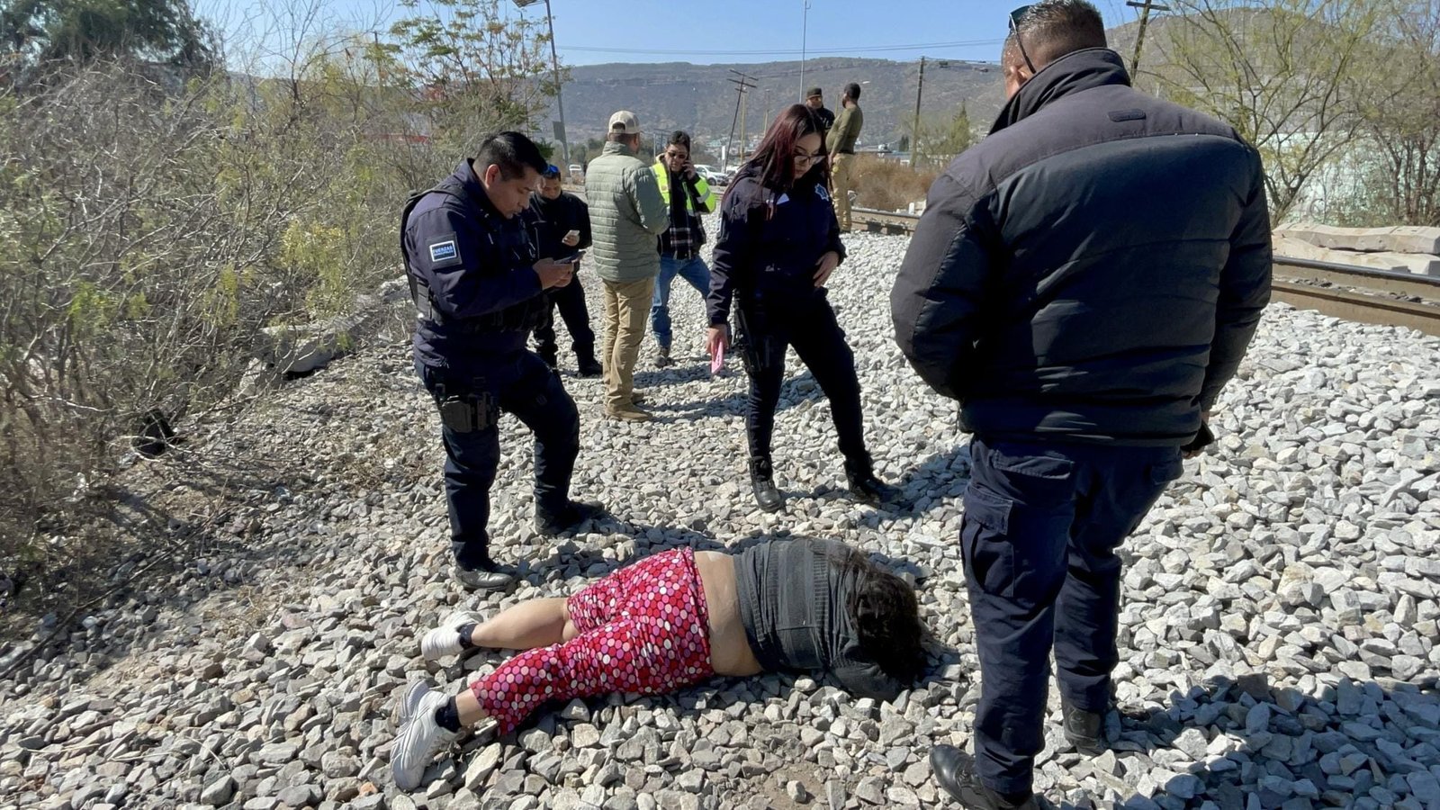 En el lugar a dos metros abajo de las vías ferroviarias estaba quejándose de diversos dolores Claudia Janet ”N”, de 24 años, quien además presenta un estado de gestación de 4 meses.