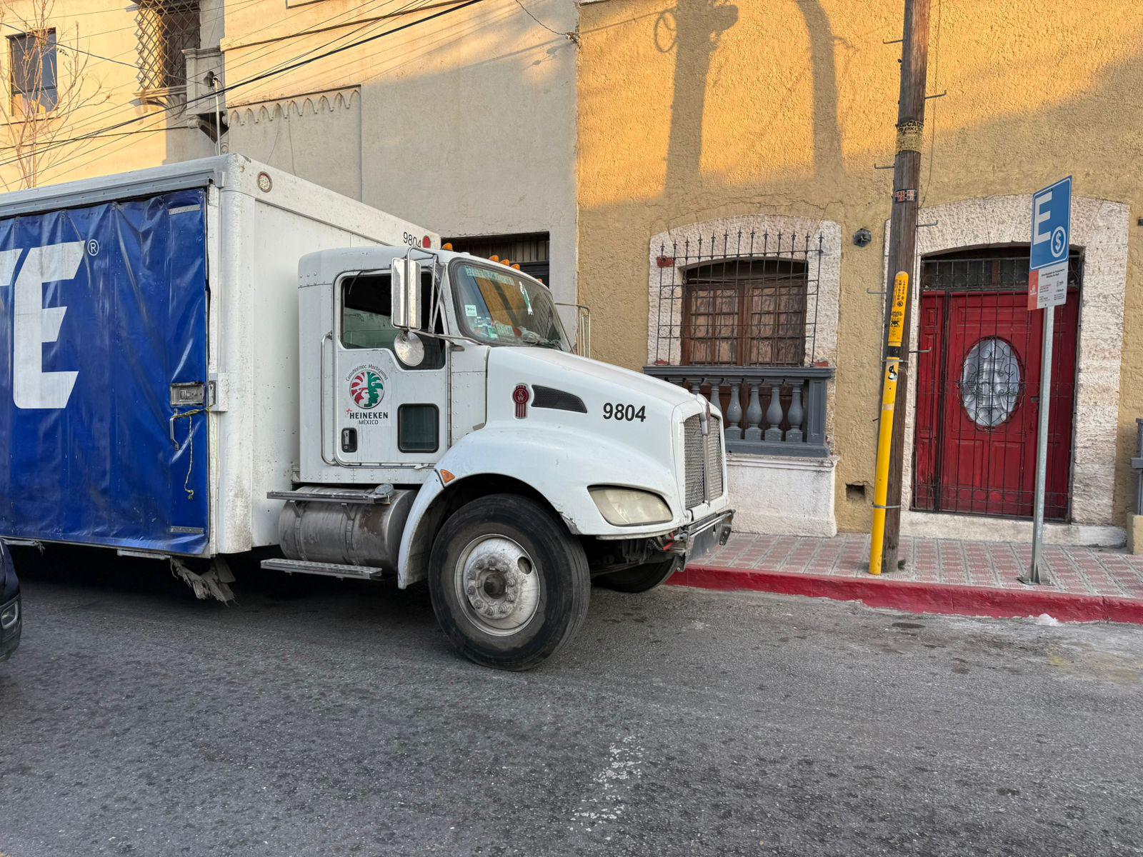 Aunque lo hizo sobre una línea roja, un camión de reparto se mantuvo durante más de una hora estacionado en el Centro Histórico de Saltillo.
