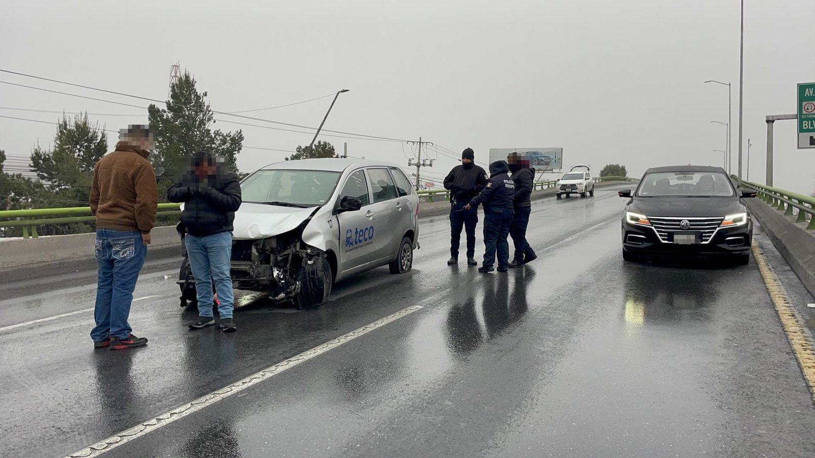 El incidente ocurrió alrededor de las 8:30 horas, cuando un vehículo Chevrolet Aveo que circulaba hacia el centro de Saltillo perdió el control al derrapar sobre la superficie congelada. El automóvil impactó por la parte trasera a un Volkswagen Jetta, quedando ambos atravesados en dos carriles de la vialidad.