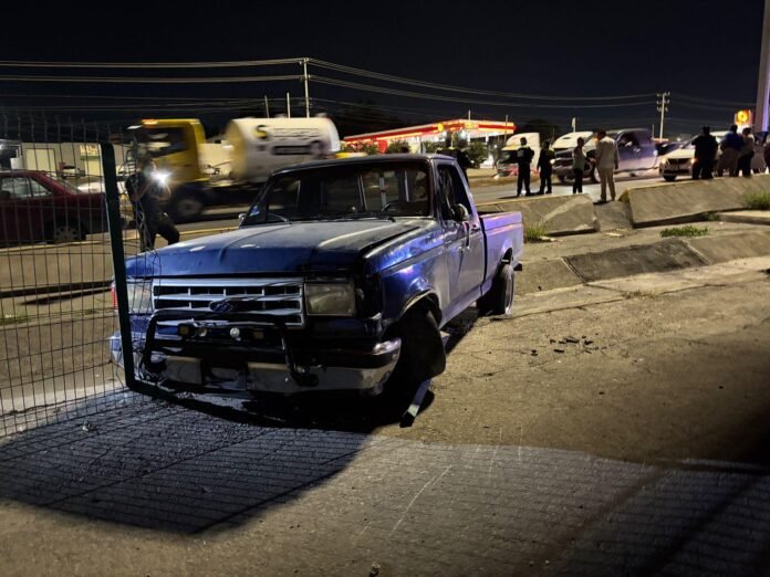 Metros antes de descender del puente para incorporarse al bulevar Fundadores, la conductora invadió un carril, provocando que el conductor de una camioneta Ford, identificado como José Alejandro ¨N¨, de 25 años, perdiera el control del volante y terminara cayendo dentro del canal, dañando parte de una reja de acero.