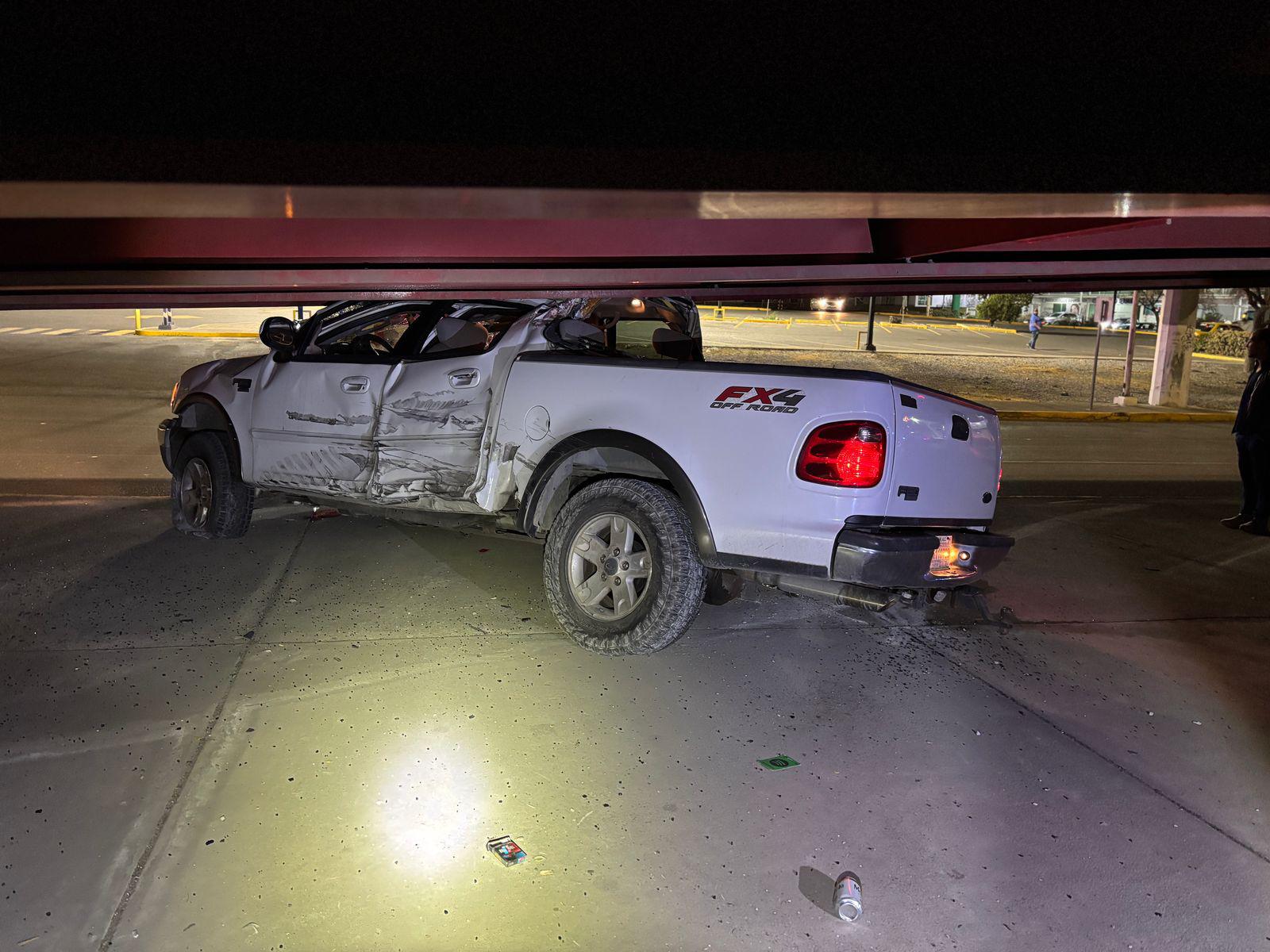 Saltillo: ebrio se pasa el rojo, impacta Rzr y lo vuelca; detienen a tres
