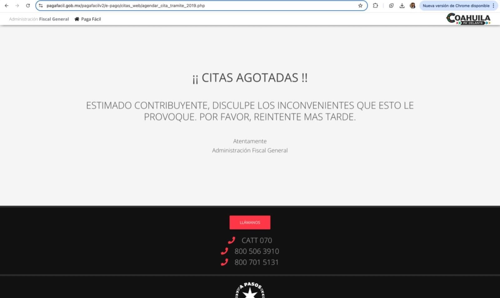Fallas en el sistema PagaFácil de la Administración Fiscal General de Coahuila generaron largas filas en las oficinas durante la mañana de este viernes 3 de enero en Saltillo.