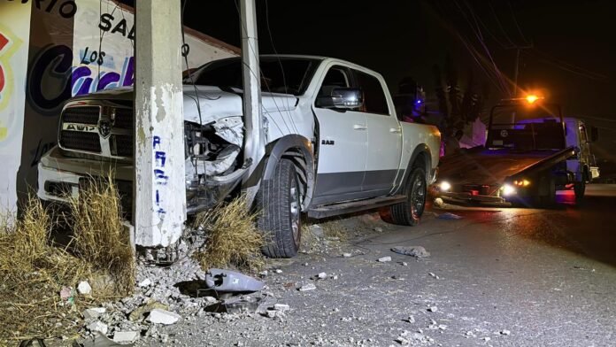 Una fuerte colisión registrada la noche del jueves en la colonia Saltillo 2000 dejó severos daños a la infraestructura urbana, luego de que el conductor de una camioneta Dodge RAM perdiera el control y se estrellara contra una luminaria y un poste de concreto de la Comisión Federal de Electricidad (CFE).