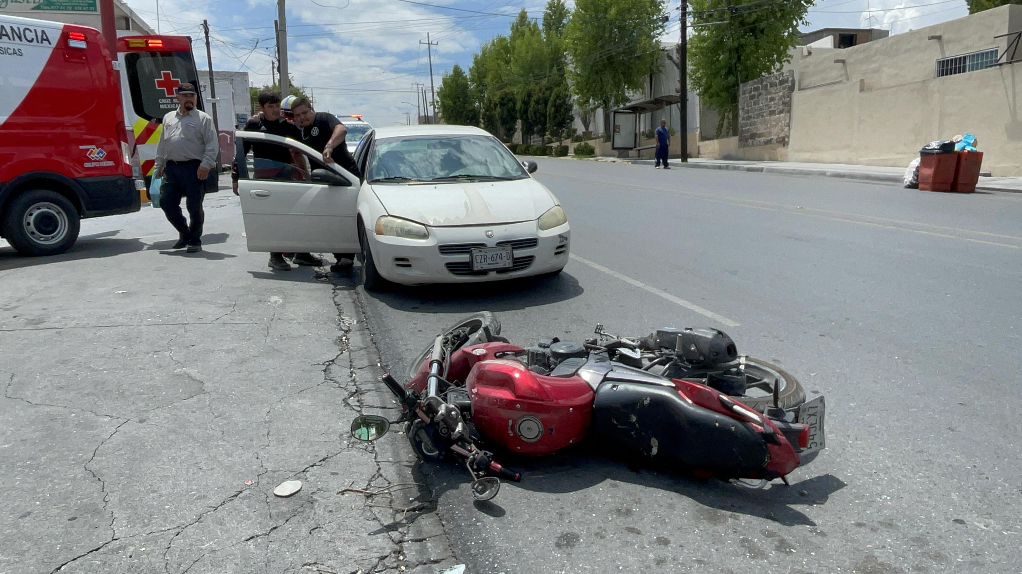 Un motociclista resultó lesionado luego de un accidente con un taxi en la colonia La Madrid, en Saltillo, y decidió esperar a la aseguradora del vehículo para recibir atención médica y el pago de los daños.