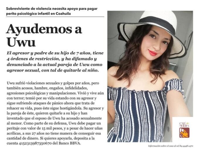 Ante esta situación, Uwu requiere un perito psicólogo infantil y, para ello, pide apoyo para reunir 15 mil pesos.
