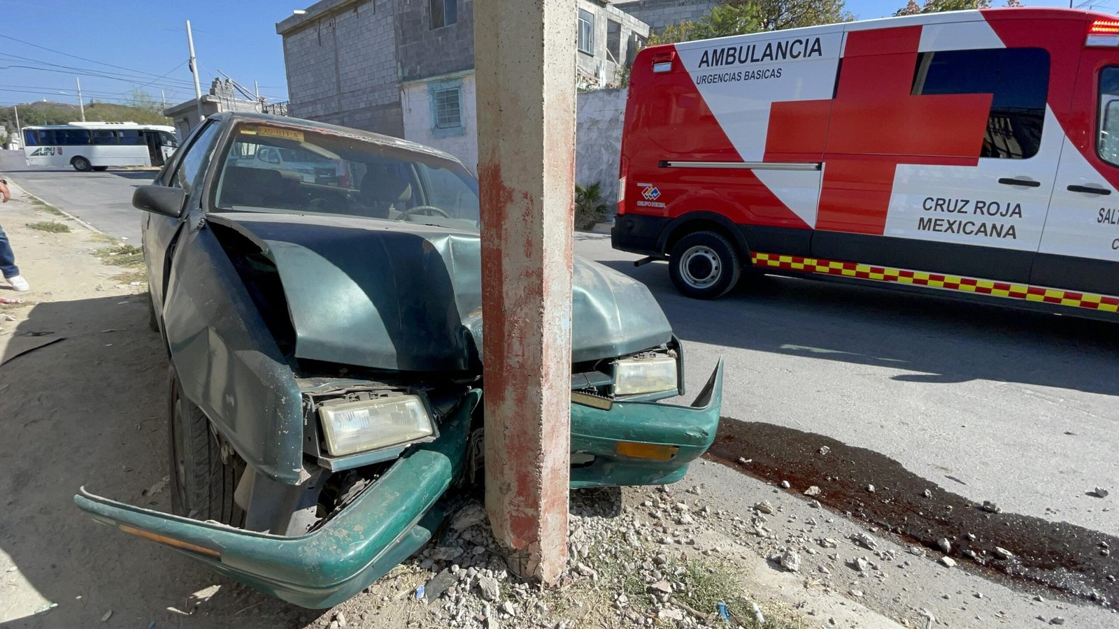 Minerva Delgado, de 60 años, fue trasladada a la Clínica 1 del IMSS con una lesión en la nariz, luego de que su vehículo se quedara sin frenos y chocara contra un poste en la colonia Josefa Ortíz de Domínguez.