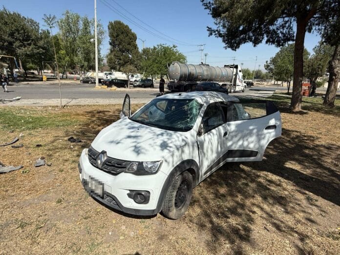 El vehículo, que era conducido por Juan Antonio ¨N¨, de 51 años, recibió el impacto en la llanta delantera derecha, lo que provocó que el automóvil perdiera el control. El conductor, tratando de evitar mayores daños, se subió a la jardinera del Paseo de la Reforma. En su trayectoria, derribó una luminaria que cayó sobre el toldo del vehículo, ocasionándole severos daños materiales.
