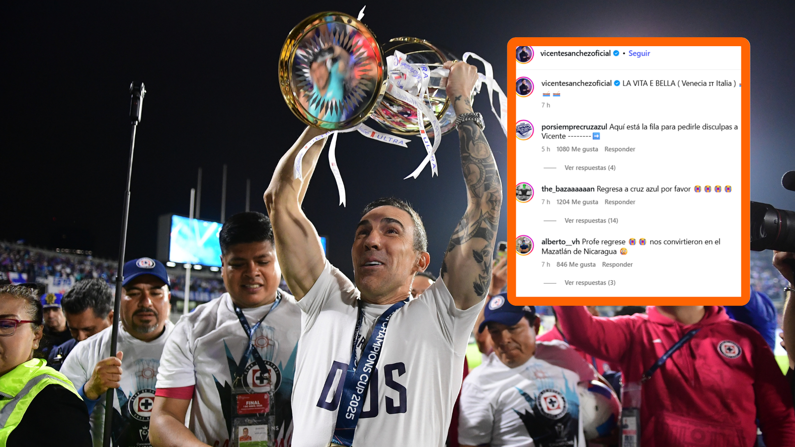 Mientras en México se comentaba la caída del equipo, Vicente Sánchez compartía imágenes desde Italia, acompañado de su familia. En una de sus publicaciones escribió en italiano: “La vita è bella”, lo que algunos interpretaron como una reacción indirecta a lo ocurrido con su exequipo.