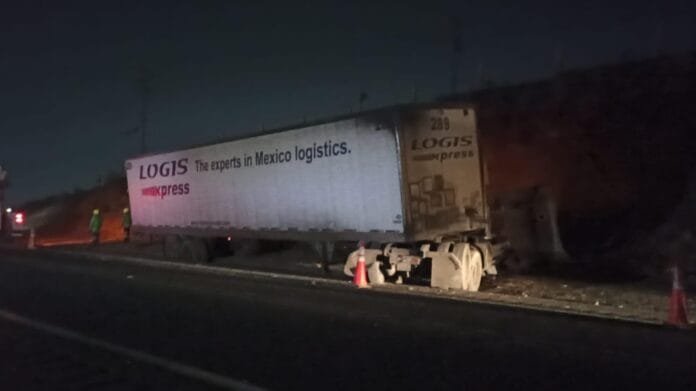 Un accidente vehicular ocurrió la madrugada de este lunes en el libramiento Norponiente, cuando un trailero, que se desplazaba de norte a sur, perdió el control de su unidad al quedarse momentáneamente dormido al volante. El incidente se registró poco antes de la medianoche, a la altura del kilómetro 35, movilizando a cuerpos de auxilio y personal de carreteras.