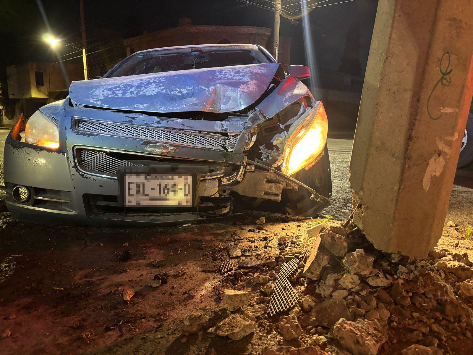 Un joven, quien presuntamente conducía bajo los efectos del alcohol, protagonizó un aparatoso accidente vehicular cuando perdió el control de su automóvil y terminó impactándose contra un poste de concreto. El percance ocurrió en las primeras horas de este martes, en la colonia San Lorenzo, en Saltillo.