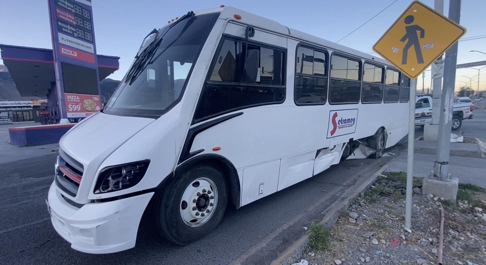 El accidente ocurrió minutos antes de las 7:00 horas, cuando la unidad de la empresa Setrameg circulaba con dirección al bulevar Mirasierra, con rumbo a Otilio González.
