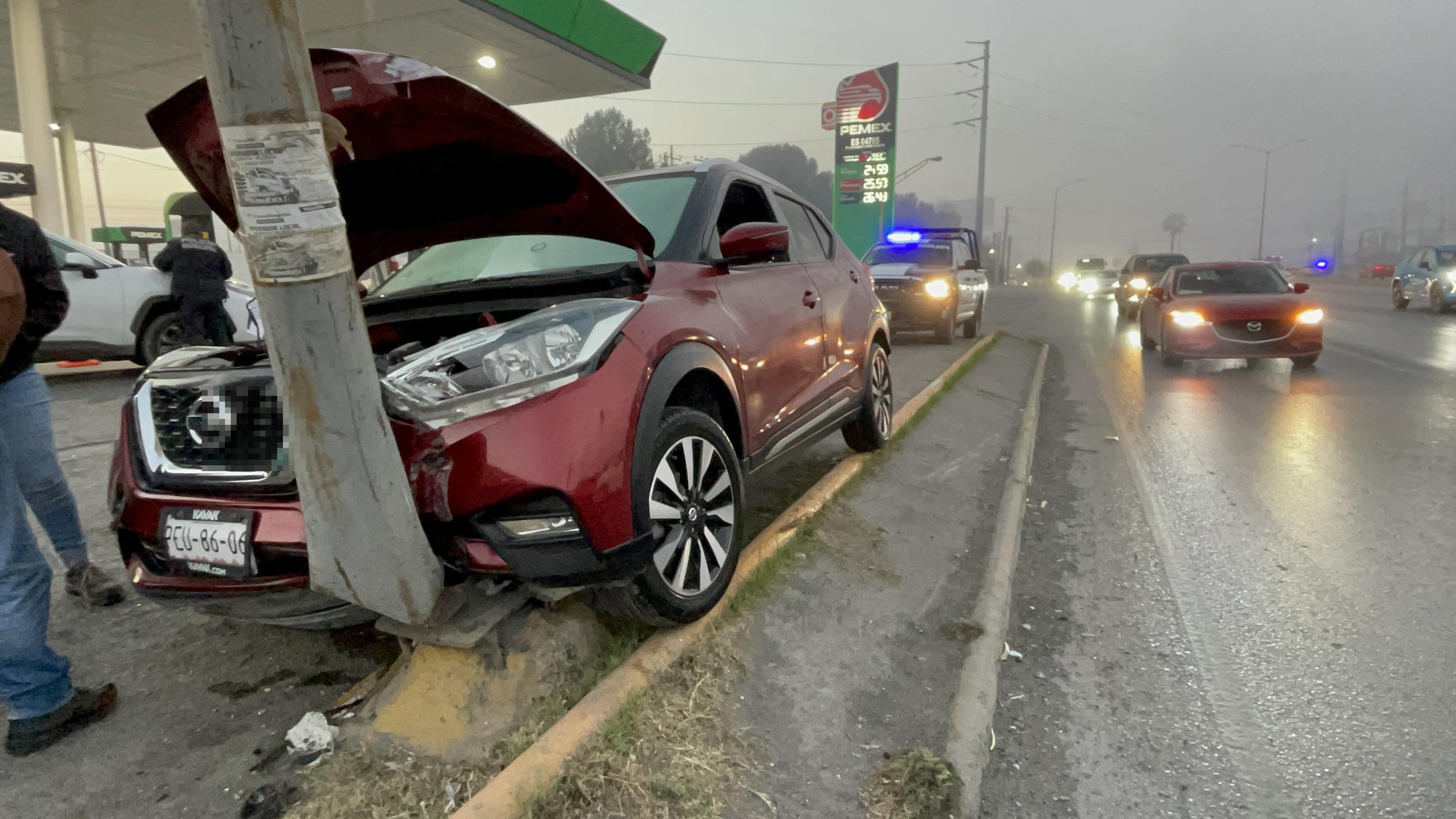 Una joven perdió el control de su vehículo y terminó impactándose contra un poste la mañana de este lunes en la carretera Saltillo-Monterrey. La densa neblina y el exceso de velocidad habrían sido factores determinantes en el accidente.