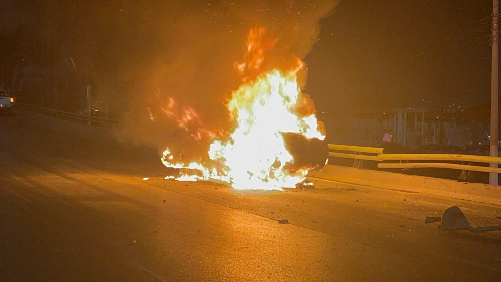 Apenas minutos después del impacto, el automóvil comenzó a incendiarse. Sin embargo, a pesar de la gravedad del choque, Jesús logró salir del vehículo antes de que el fuego se propagara, sin sufrir lesiones de consideración. Aunque el joven observó en shock cómo su automóvil se consumía por completo en llamas, pudo salir por su propio pie del siniestro.