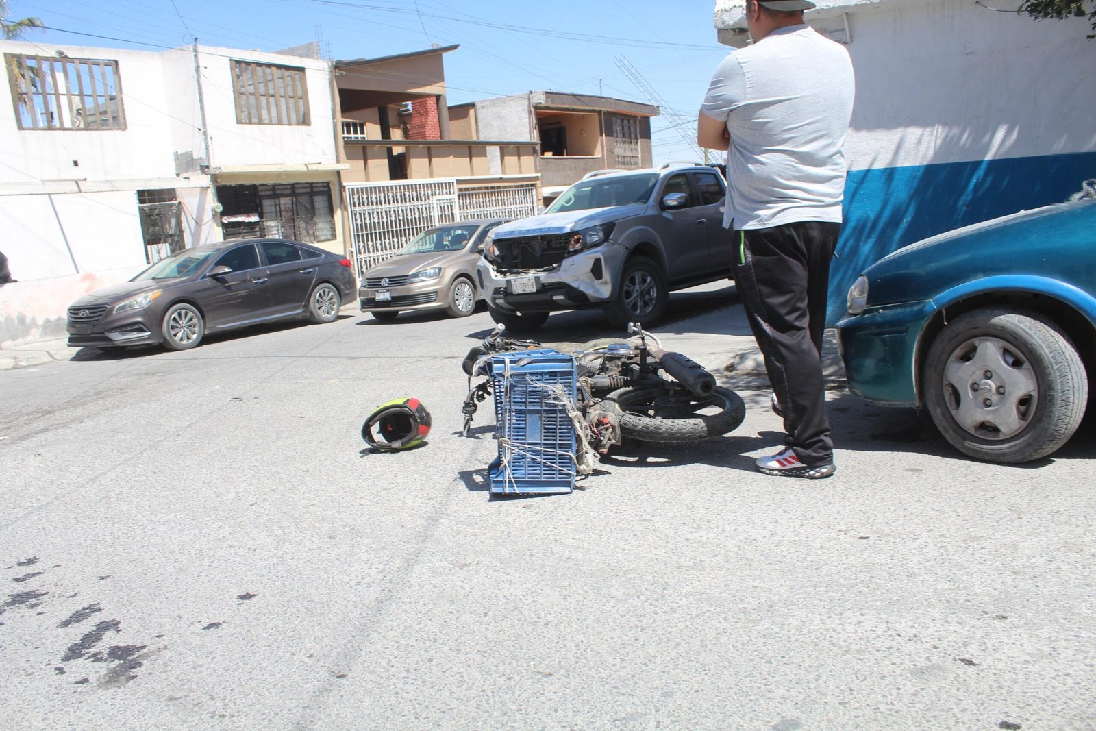Un motociclista y su hijo resultaron gravemente lesionados tras ser derribados por una camioneta durante la mañana de este domingo en un incidente ocurrido en la calle Ramón de León, en Saltillo.