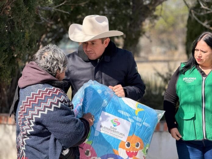 SAN BUENAVENTURA, COAH.- En apoyo a los más vulnerables, comerciantes del municipio de San Buenaventura se unieron al gobierno municipal para llevar apoyos que les ayuden a enfrentar las bajas temperaturas que se sienten en la localidad.