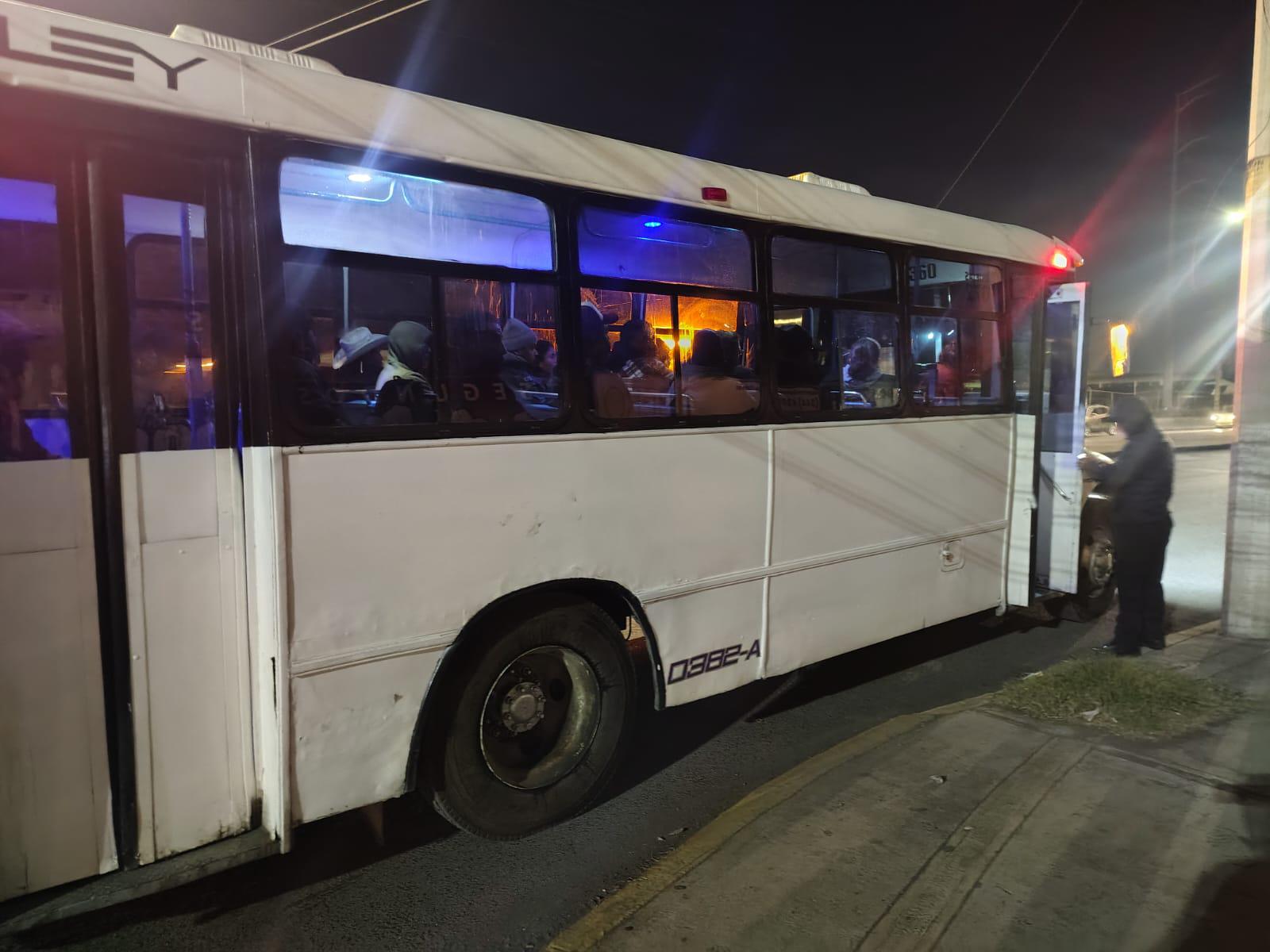 Alrededor de las 7:00 horas, las pasajeras de la ruta 5B con número económico 71 solicitaron apoyo a un oficial de tránsito que estaba regulando el tráfico en el cruce de Luis Echeverría Álvarez e Isidro López Zertuche.