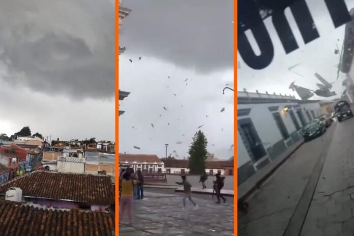Usurarios de redes sociales compartieron videos de los momentos de tensión que vivieron durante y después del tornado. Uno de ellos documentó el paso del torbellino por el Centro Histórico de San Cristóbal de las Casas.