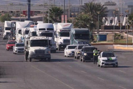 TORREÓN, COAH.- Una gran movilización de protesta realizaron este viernes camioneros materialistas adheridos a la Unión de Transportistas de Carga y Turismo (UTCT), por un libre tránsito y para denunciar el acoso por parte de la Guardia Nacional y policías en los retenes.