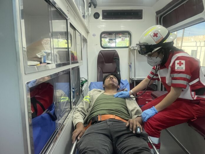 Cayó con todo escalinata de una altura aproximada a los 5 metros. Tras el accidente sufrió una herida en labio, en brazos y sus compañeros de manera inmediata dieron aviso al sistema de emergencias 911. Los primeros en acudir fueron paramédicos de la ambulancia 229 y al paciente lo abordaron en camilla.