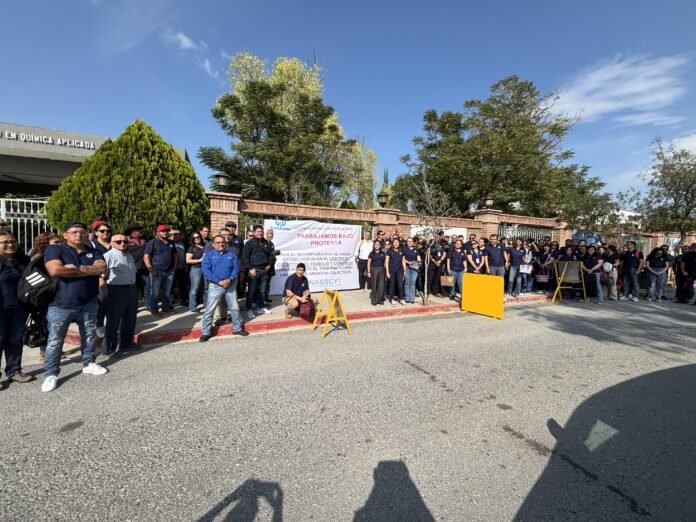 Trabajadores del Centro de Investigación en Química Aplicada (CIQA) en Saltillo, realizaron una protesta pacífica este miércoles a las afueras del centro, al norte de la ciudad, por el incumplimiento en el pago de prestaciones e incrementos salariales.