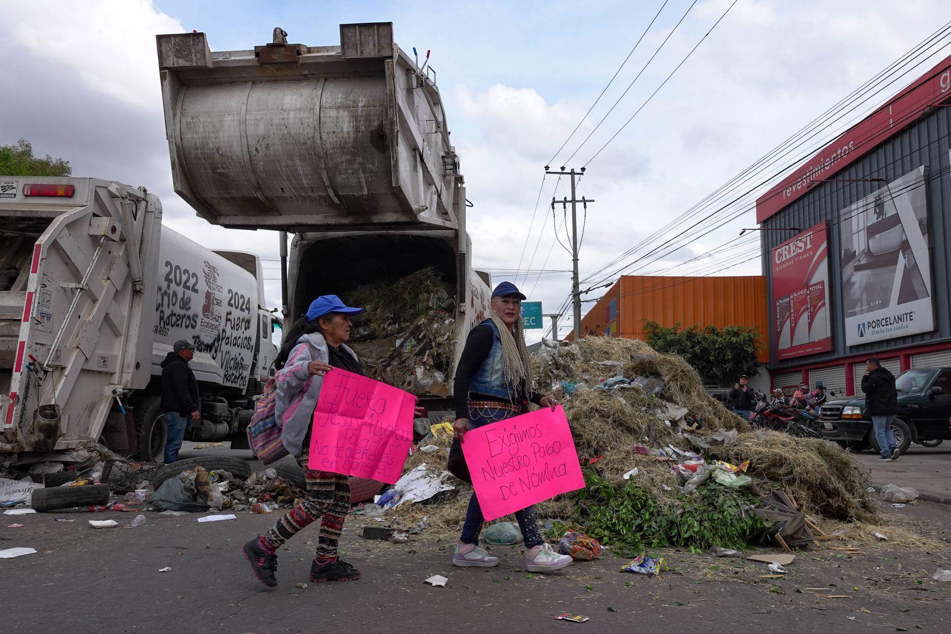 Los empleados del Sistema de Agua Potable Alcantarillado y Saneamiento de Ecatepec (SAPASE), adheridos al Sindicato Único del Estado de México (Suteym), cumplieron 36 horas de bloqueos en las principales vialidades de Ecatepec, en demanda del pago de prestaciones laborales de fin de año y los que están apostados sobre la Vía Morelos, tiraron basura que estaba en los camiones recolectores que habían colocado para obstruir el paso de vehículos.