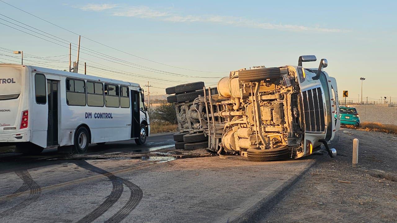 Aunque no se reportaron personas lesionadas, parte del diésel del tractocamión se derramó sobre la carpeta asfáltica, por lo que fue necesario aplicar material absorbente para evitar otro percance.