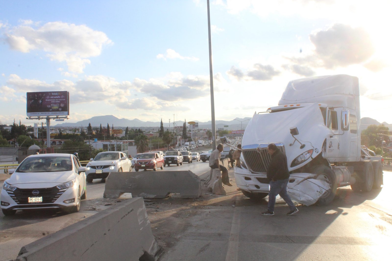 Un accidente protagonizado por un tráiler de la empresa Piscis desató un severo caos vial en el bulevar Fundadores, afectando ambos sentidos de la circulación y el Distribuidor Vial El Sarape, en Saltillo, la tarde de este jueves.