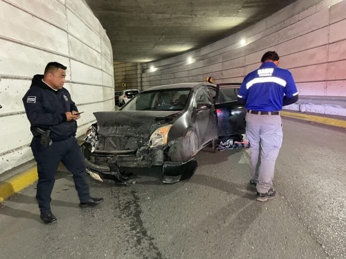 El percance ocurrió cuando Raúl N., de 18 años, conducía un Nissan Altima con placas de Durango rumbo al oriente. Al ingresar al área subterránea, perdió el control del vehículo debido al exceso de velocidad, lo que provocó que se impactara de frente contra una barra metálica.
