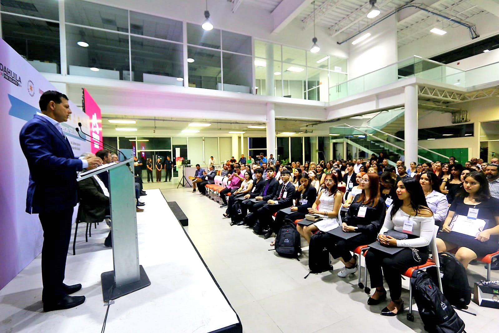 El evento, realizado en el lobby de la Infoteca Campus Arteaga, contó con la presencia del secretario de Educación de Coahuila, Emmanuel Garza Fishburn; el rector de la UAdeC, Octavio Pimentel Martínez; el presidente y fundador de Sélíder, Javier Prieto de la Fuente; el director del Tecnológico de Monterrey Campus Saltillo, Adrián Fernando González; la directora del Instituto Tecnológico de Saltillo, Ania Sánchez Ruiz; el representante del Consejo Sélíder Saltillo, Daniel Garza Treviño, así como becarias, becarios y sus familias.