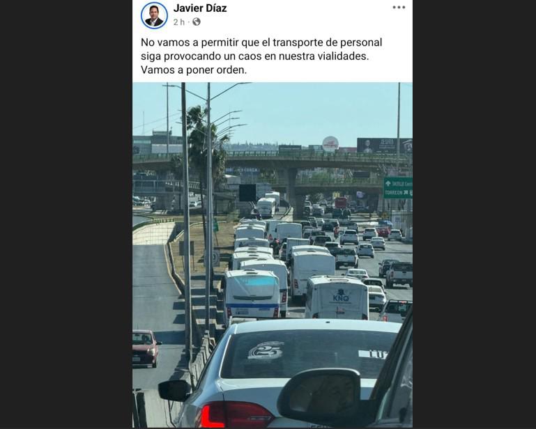 “No vamos a permitir que el transporte de personal siga provocando un caos en nuestras vialidades. Vamos a poner orden”, afirmó el alcalde de Saltillo, Javier Díaz González, a través de una publicación en sus redes sociales, donde anunció medidas para regular este servicio y mejorar la movilidad en la ciudad.