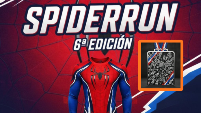 La medalla de esta edición presenta un diseño rectangular con bordes metálicos, al centro una figura de araña en relieve y un fondo que recrea una vista aérea de edificios. El listón combina tonos rojo, blanco y azul, con la leyenda Spider Run 2026, un distintivo que acompañará a quienes crucen la meta. Por su parte, la playera oficial será de manga larga, en colores rojo y azul, con un diseño inspirado en el traje clásico del superhéroe, pensada para el uso deportivo y conmemorativo.