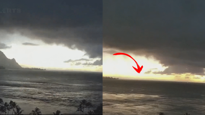 Imágenes captadas por cámaras de monitoreo en la bahía de Hanalei, en la isla de Kauai (Hawái), revelan un fenómeno preocupante: el retroceso del mar ha dejado al descubierto más de 30 metros del fondo marino, lo cual es considerado un indicio temprano de la llegada de un tsunami. Este efecto ha sido observado en tiempo real también en otras islas del archipiélago, como Oahu, donde se localiza la capital, Honolulu, y donde el nivel del agua ha descendido visiblemente en menos de una hora.