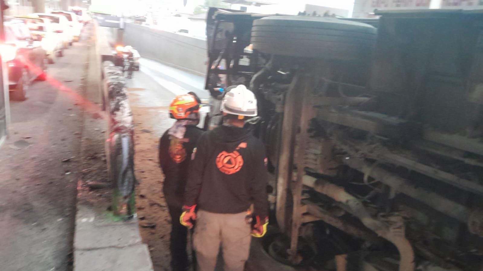 Protección Civil del estado informó del suceso tipo volcadura, en el que participó una unidad conducida por Luis Rubí González, de 66 años de edad.